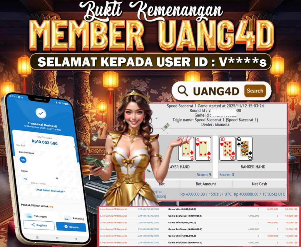 Setiap hari, member UANG4D berhasil meraih jackpot besar dari berbagai macam permainan livecasino ternama yang kami sediakan, seperti Roullete, Dragon & Tiger, Qiu Qiu dan masih banyak lagi. Kami secara rutin menampilkan bukti screenshot atau rekapan kemenangan yang berhasil diraih, mulai dari kemenangan ratusan ribu hingga puluhan juta rupiah. Semua slip kemenangan ini kami hadirkan untuk membuktikan bahwa di UANG4D, peluang menang itu nyata.