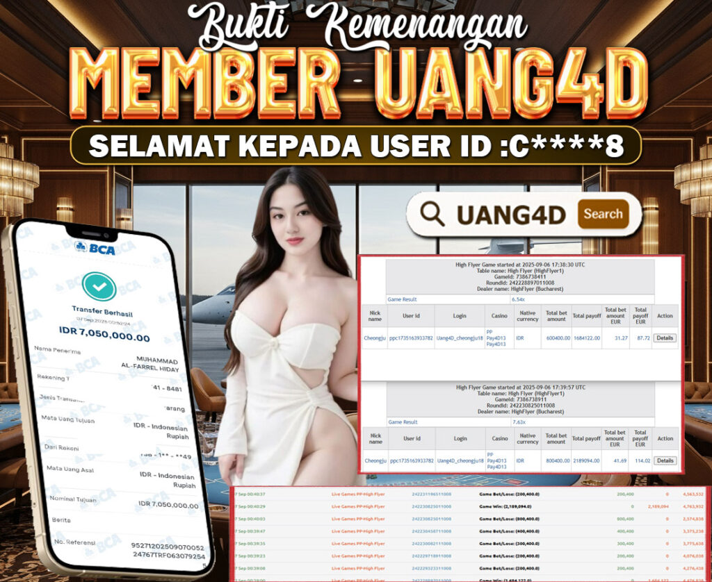 Setiap hari, member UANG4D berhasil meraih jackpot besar dari berbagai macam permainan livecasino ternama yang kami sediakan, seperti Roullete, Dragon & Tiger, Qiu Qiu dan masih banyak lagi. Kami secara rutin menampilkan bukti screenshot atau rekapan kemenangan yang berhasil diraih, mulai dari kemenangan ratusan ribu hingga puluhan juta rupiah. Semua slip kemenangan ini kami hadirkan untuk membuktikan bahwa di UANG4D, peluang menang itu nyata.