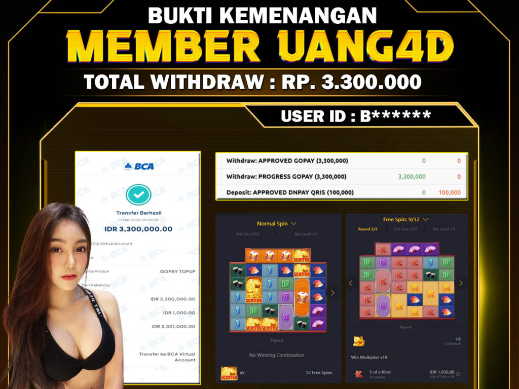 Jangan lewatkan kesempatan untuk meraih kemenangan besar. Daftar sekarang di UANG4D dan rasakan pengalaman bermain slot terbaik yang pernah ada! Putar gulungan, menangkan jackpot, dan jadilah bagian dari komunitas pemain sukses kami!