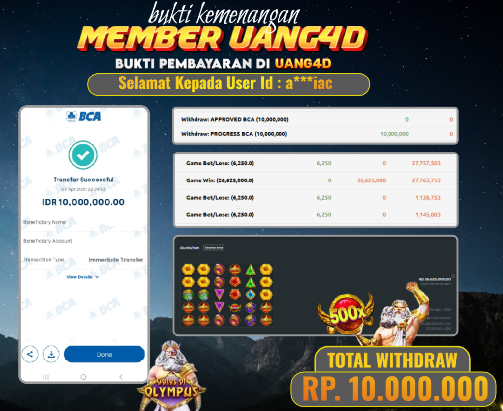UANG4DJACKPOT SLOT GACOR OLYMPUS1000 03 APRIL 2025, Jackpot Slot, Kemenangan Slot, Bukti Kemenangan Slot, Kemenangan Slot Pragmatic Play, Menang Slot online, Slot Gacor, Situs Aman Terpercaya, WD Berapapun Pasti DI Bayar Tuntas, Maxwin Slot Online.