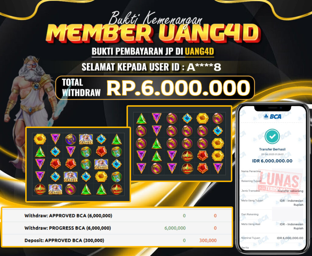 UANG4D JACKPOT SLOT GATES OF OLYMPUS 25 OKTOBER 2025, Kemenangan Slot, Bukti Kemenangan Slot, Kemenangan Slot Pragmatic Play, Menang Slot online, Slot Gacor, Situs Aman Terpercaya, Withdraw Berapapun Pasti DI Bayar Tuntas, Maxwin Slot Online.