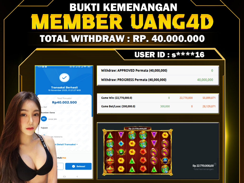 Jangan lewatkan kesempatan untuk meraih kemenangan besar. Daftar sekarang di UANG4D dan rasakan pengalaman bermain slot terbaik yang pernah ada! Putar gulungan, menangkan jackpot, dan jadilah bagian dari komunitas pemain sukses kami!