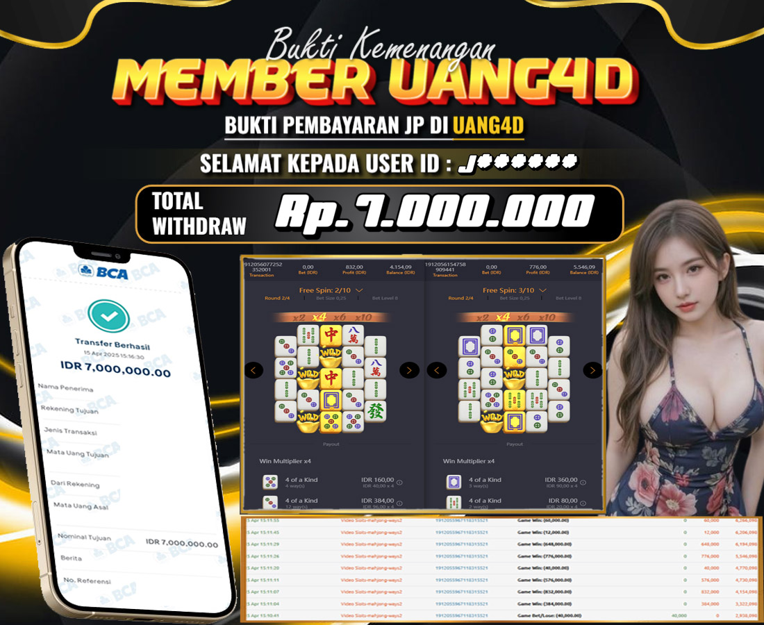 Jangan lewatkan kesempatan untuk meraih kemenangan besar. Daftar sekarang di UANG4D dan rasakan pengalaman bermain slot terbaik yang pernah ada! Putar gulungan, menangkan jackpot, dan jadilah bagian dari komunitas pemain sukses kami!