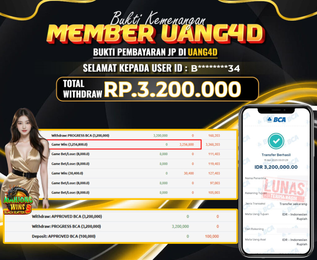 UANG4D JACKPOT SLOT MAHJONG WINS 3 15 APRIL 2025, Kemenangan Slot, Bukti Kemenangan Slot, Kemenangan Slot Pragmatic Play, Menang Slot online, Slot Gacor, Situs Aman Terpercaya, Withdraw Berapapun Pasti DI Bayar Tuntas, Maxwin Slot Online.