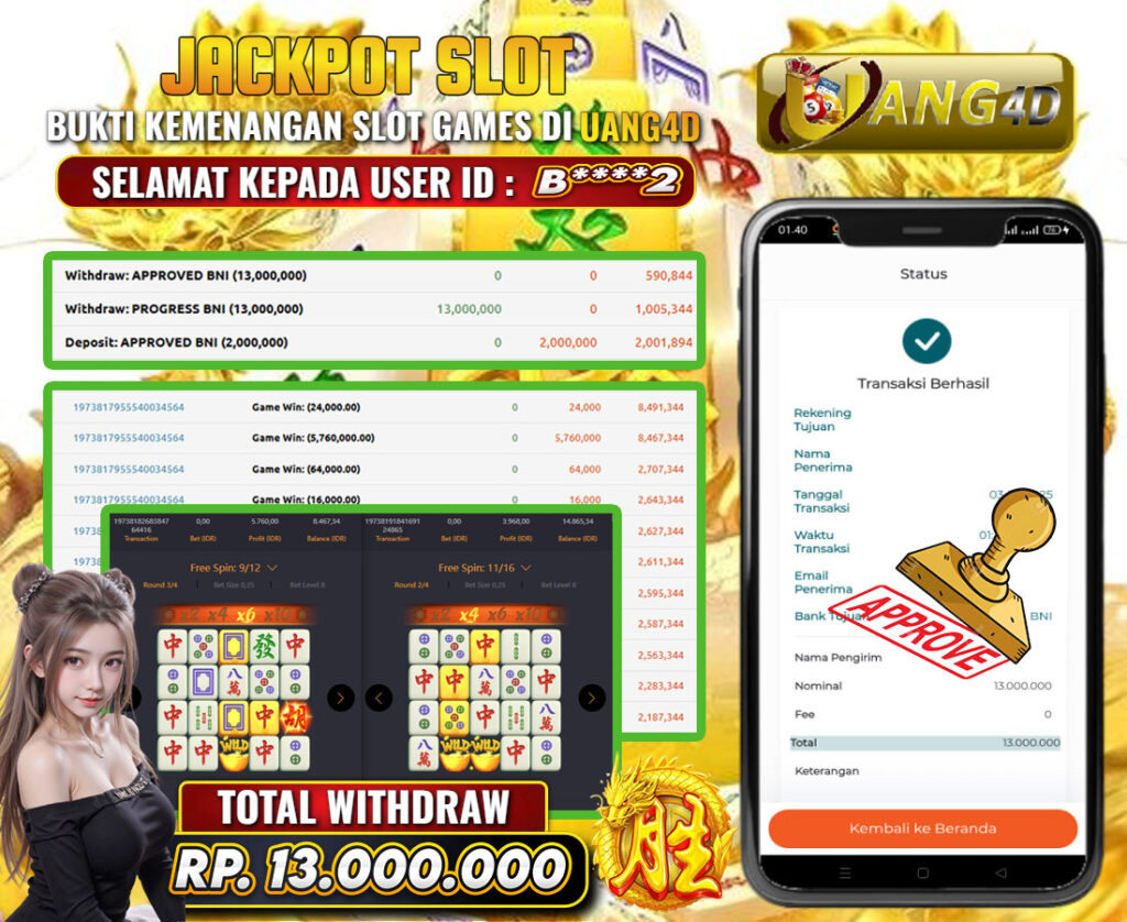 Jangan lewatkan kesempatan untuk meraih kemenangan besar. Daftar sekarang di UANG4D dan rasakan pengalaman bermain slot terbaik yang pernah ada! Putar gulungan, menangkan jackpot, dan jadilah bagian dari komunitas pemain sukses kami!