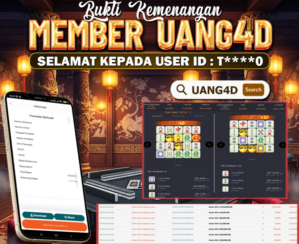 Jangan lewatkan kesempatan untuk meraih kemenangan besar. Daftar sekarang di UANG4D dan rasakan pengalaman bermain slot terbaik yang pernah ada! Putar gulungan, menangkan jackpot, dan jadilah bagian dari komunitas pemain sukses kami!
