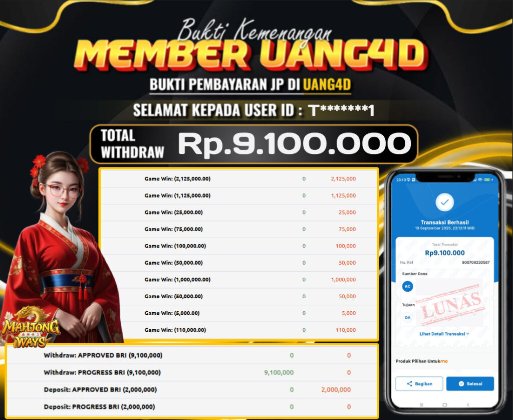 UANG4D JACKPOT SLOT MAHYONG WAYS 11 SEPTEMBER 2025 , Jackpot Slot, Kemenangan Slot, Bukti Kemenangan Slot, Kemenangan Slot PG SOFT Play, Menang Slot online, Slot Gacor, Situs Aman Terpercaya, Withdraw Berapapun Pasti DI Bayar Tuntas, Maxwin Slot Online.