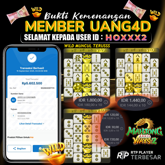 UANG4D JACKPOT SLOT MAHYONG WAYS (2) 15 SEPTEMBER 2025 , Jackpot Slot, Kemenangan Slot, Bukti Kemenangan Slot, Kemenangan Slot PG SOFT Play, Menang Slot online, Slot Gacor, Situs Aman Terpercaya, Withdraw Berapapun Pasti DI Bayar Tuntas, Maxwin Slot Online.