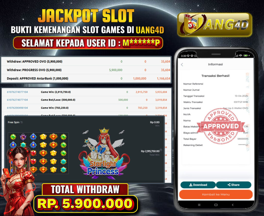 UANG4D –JACKPOT SLOTSTARLIGHT PRINCES 10 APRIL 2025, Kemenangan Slot, Bukti Kemenangan Slot, Kemenangan Slot Pragmatic Play, Menang Slot online, Slot Gacor, Situs Aman Terpercaya, Withdraw Berapapun Pasti DI Bayar Tuntas, Maxwin Slot Online.