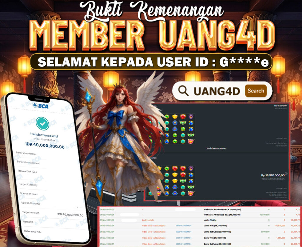 Jangan lewatkan kesempatan untuk meraih kemenangan besar. Daftar sekarang di UANG4D dan rasakan pengalaman bermain slot terbaik yang pernah ada! Putar gulungan, menangkan jackpot, dan jadilah bagian dari komunitas pemain sukses kami!