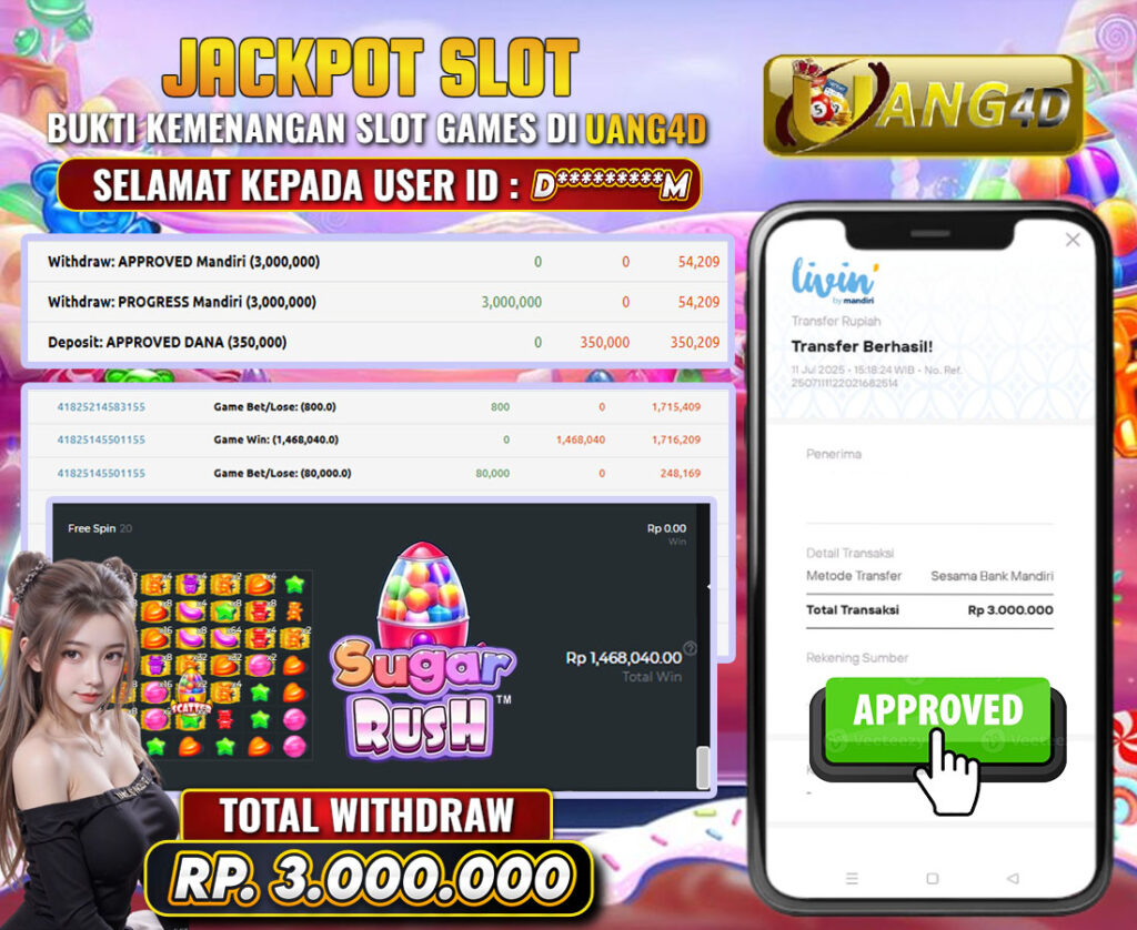 UANG4D –JACKPOT SLOT Sugar Rush 11 Juli 2025, Kemenangan Slot, Bukti Kemenangan Slot, Kemenangan Slot Pragmatic Play, Menang Slot online, Slot Gacor, Situs Aman Terpercaya, Withdraw Berapapun Pasti DI Bayar Tuntas, Maxwin Slot Online.