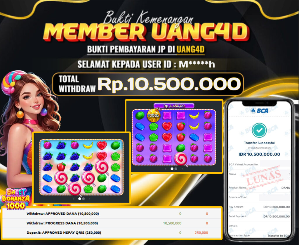 UANG4D –JACKPOT SLOT SWEET BONANZA 1000 01 SEPTEMBER 2025, Kemenangan Slot, Bukti Kemenangan Slot, Kemenangan Slot Pragmatic Play, Menang Slot online, Slot Gacor, Situs Aman Terpercaya, Withdraw Berapapun Pasti DI Bayar Tuntas, Maxwin Slot Online.