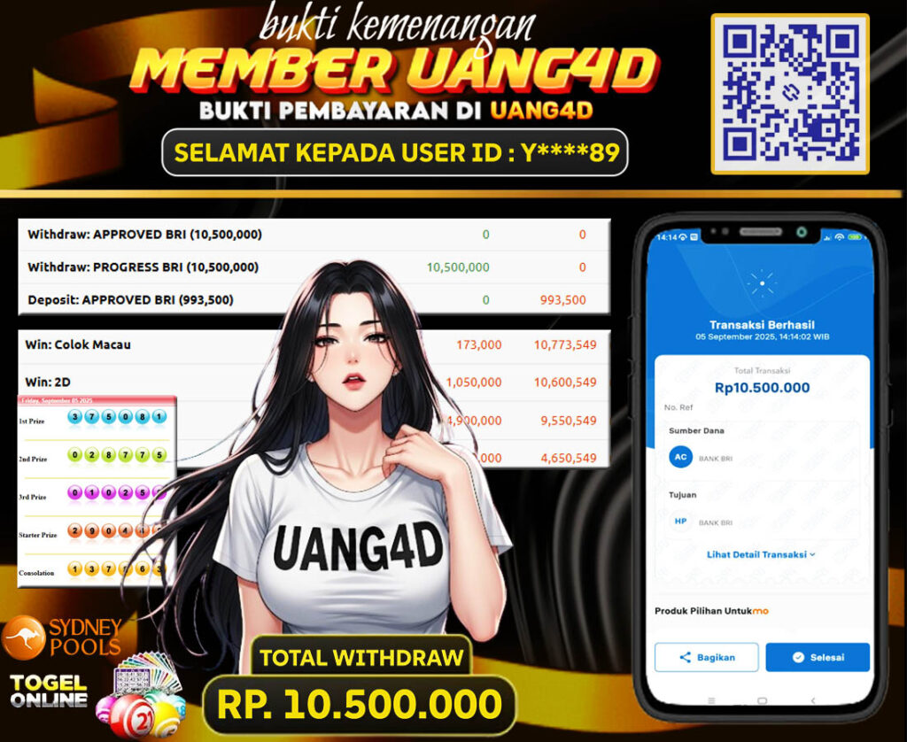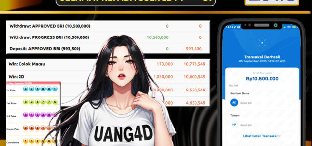 Setiap hari, member UANG4D berhasil meraih jackpot besar dari berbagai provider togel ternama yang kami sediakan, seperti Sydney, Singapore, Hongkong dan masih banyak lagi. Kami secara rutin menampilkan bukti screenshot atau rekapan kemenangan yang berhasil diraih, mulai dari kemenangan ratusan ribu hingga puluhan juta rupiah. Semua slip kemenangan ini kami hadirkan untuk membuktikan bahwa di UANG4D, peluang menang itu nyata.