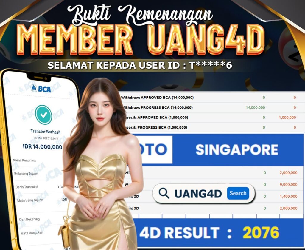 Setiap hari, member UANG4D berhasil meraih jackpot besar dari berbagai provider togel ternama yang kami sediakan, seperti Sydney, Singapore, Hongkong dan masih banyak lagi. Kami secara rutin menampilkan bukti screenshot atau rekapan kemenangan yang berhasil diraih, mulai dari kemenangan ratusan ribu hingga puluhan juta rupiah. Semua slip kemenangan ini kami hadirkan untuk membuktikan bahwa di UANG4D, peluang menang itu nyata.