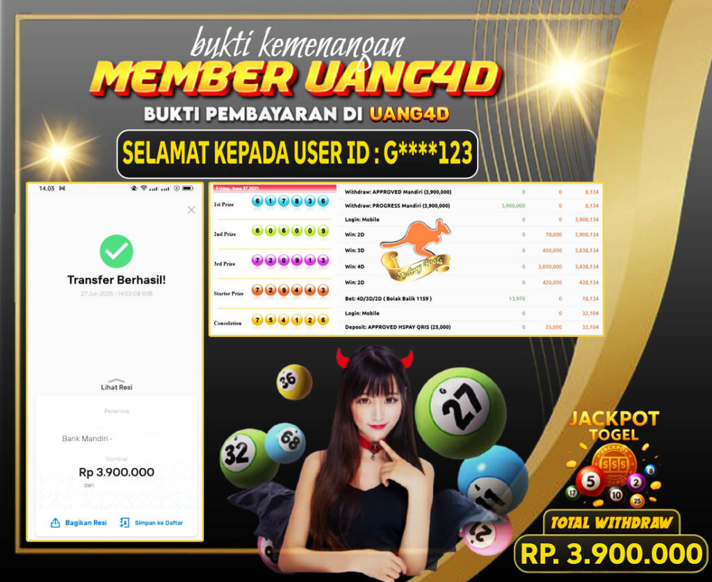 Selamat Kepada Member Yang Berhasil Mendapatkan Jackpot Dipermainan Togel Hari Ini, Berikut Bukti SS Jackpot Member Di Situs UANG4D